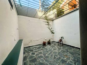 - Área de patio interno/terraza: Una zona de patio interior con piso de adoquines y un techo de pérgola de metal se presenta como un espacio semi-cubierto, ideal para plantas o para un pequeño rincón de descanso.