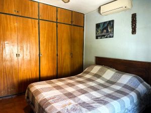 - Dormitorios: Dispone de 4 dormitorios, uno de ellos en suite con vestidor, ofreciendo privacidad y confort. Se aprecian imágenes de dos dormitorios: uno con una cama grande con cabecero capitoné en tonos tierra y un ventilador de techo, y otro con una cama de madera, amplios placares de madera empotrados, y aire acondicionado, ambos con ventanas que permiten el ingreso de luz natural. Una tercera habitación, que podría ser un dormitorio adicional o espacio multiuso (playroom/escritorio),con una ventana que se abre hacia el exterior.