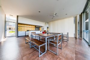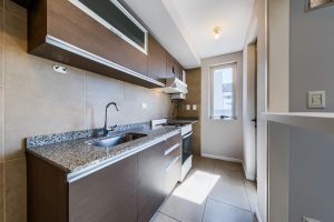 Cocina amoblada semi integrada por barra desayunador