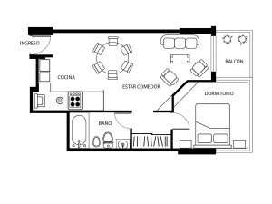 - 1 DormitorioUnidad 2: Piso 8 Frente con Balcón, un Dormitorio